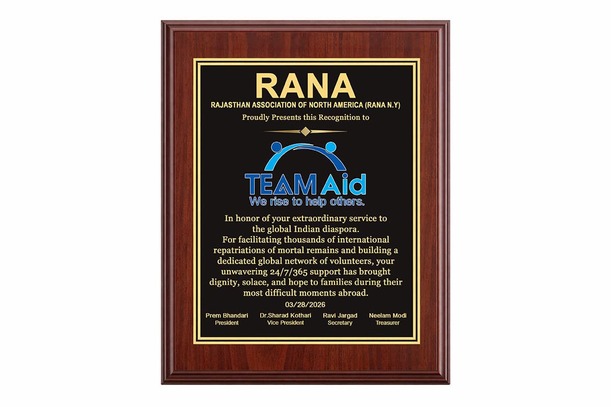 TEAM Aid Honored by the Consulate General of India, San Francisco